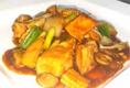 With onions and mixed peppers in black bean sauce.